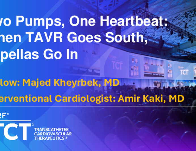 Presentation TCT 2025 TCT 1426: Two Pumps, One Heartbeat: When TAVR Goes South, Impellas Go In Presenter: Mazhed Kheyrbek October 28, 2025 REGISTER for free or LOG IN to view this content TCT 2025 Up Next Presentation TCT 2025 TCT 1559: Bridged and Blown: Complex PCI of a Myocardial Bridge Complicated by Coronary-LV Fistula Presenter: Nishitha Reddy Vempalli October 28, 2025 More slides + Presentation TCT 2025 TCT 1385: The Use of Prophylactic VA-ECMO With High-Risk TAVR Presenter: Nicholas Wenz October 28, 2025 Presentation TCT 2025 TCT 1386: A Triple TAVR Trouble: When Bleeding Infection and Valve Disease Collide Presenter: Eloina Baltazar October 28, 2025 We Recommend Disclosures <p>Nothing to disclose</p>