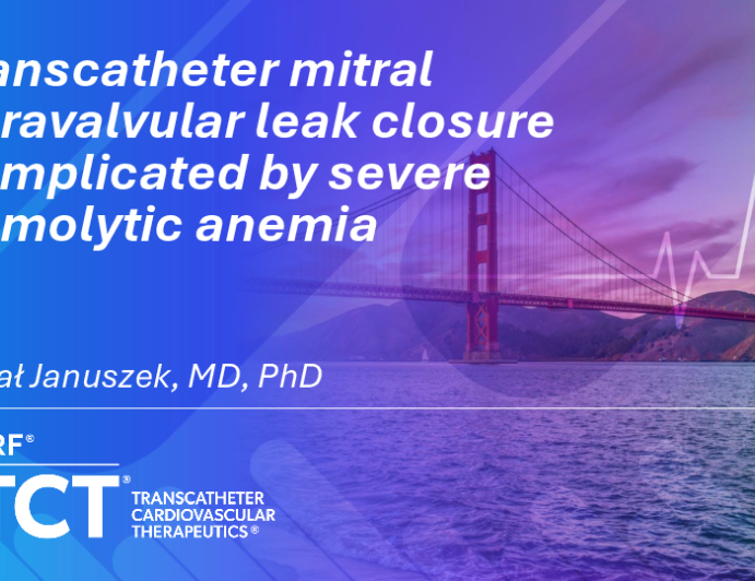 Presentation TCT 2025 TCT 1480: Transcatheter Mitral Paravalvular Leak Closure Complicated by Severe Hemolytic Anemia Presenter: Rafal Adam Januszek October 25, 2025 REGISTER for free or LOG IN to view this content TCT 2025 Up Next Presentation TCT 2025 TCT 1505: Concurrent Mitral and Tricuspid Ring Failures: What to Do? Presenter: Zaid Ali Abdulelah October 25, 2025 More slides + Presentation TCT 2025 TCT 1516: Don't Bring a Gun to a Knife Fight: Percutaneous Vegetation Removal Using AngioVac Presenter: Aishwarya Sharma October 25, 2025 Presentation TCT 2025 TCT 1430: Valve-in-Valve TAVR With Preceding Paravalvular Leak Closure for a Failed Bioprosthesis Presenter: Changxi Chen October 25, 2025 We Recommend Disclosures <p>Nothing to disclose</p>