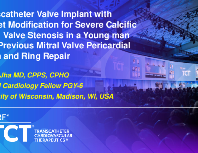 TCT 1483: Transcatheter Valve Implant With Leaflet Modification for Severe Calcific Mitral Valve Stenosis in a Young Man With Previous Mitral Valve Pericardial Patch and Ring Repair