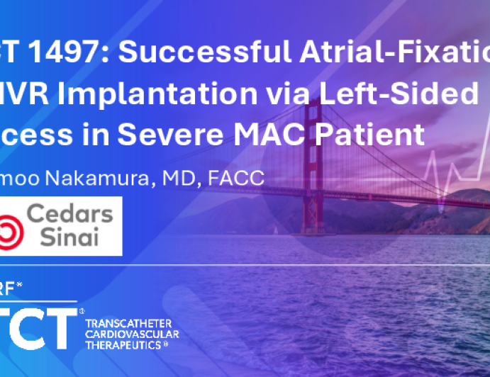 Presentation TCT 2025 TCT 1487: Successful Atrial-Fixation TMVR Implantation via Left-Sided Access in Severe MAC Patient Presenter: Mamoo Nakamura October 28, 2025 REGISTER for free or LOG IN to view this content TCT 2025 Up Next Presentation TCT 2025 TCT 1488: Minimally Invasive Transatrial Direct Surgical Valve-in-MAC Implantation: How to Treat the Untreatable Presenter: Giuseppe Bruschi October 28, 2025 More slides + Presentation TCT 2025 TCT 1812: Imaging-supported PCI of Vulnerable Lesions: Extending the Role of Coronary CT Beyond Luminal Stenosis Presenter: Marc El Khoury October 28, 2025 Presentation TCT 2025 TCT 1486: Retrograde Wiring and Antegrade Valve Delivery During Transcatheter Mitral Valve Replacement (TMVR) in the Presence of Atrial Septal Aneurysm Presenter: Nanda Kishore Panigrahi October 28, 2025 We Recommend Disclosures <p>Nothing to disclose</p>