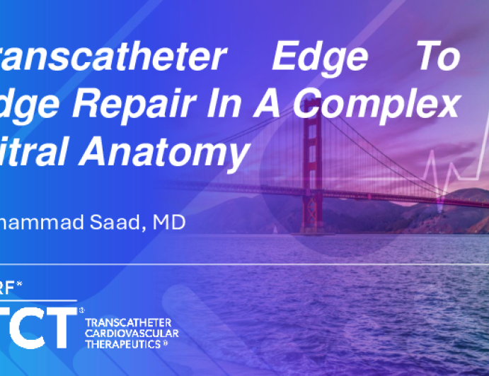 Presentation TCT 2025 TCT 1495: Transcatheter Edge to Edge Repair in Complex Mitral Valve Anatomy Presenter: Muhammad Saad October 26, 2025 REGISTER for free or LOG IN to view this content TCT 2025 Up Next Presentation TCT 2025 TCT 1454: AlphaVac Extraction of Infected Vegetations From a Mitral Bioprosthesis: Expanding the Boundaries of Percutaneous Therapy Presenter: Mohamed Maki October 26, 2025 More slides + Presentation TCT 2025 TCT 1455: When MAC Attacks: Stroke-Driven Discovery and Percutaneous Removal of a Mobile Mitral Annular Mass via Transseptal AngioVac With Cerebral Protection Presenter: Huseyin Emre Arman October 26, 2025 Presentation TCT 2025 TCT 1456: Hepatic Vein Flow Reversal Secondary to Iatrogenic Atrial Septal Defect Following Transcatheter Mitral Valve-in-Valve Implantation Presenter: Parth S. Patel October 26, 2025 We Recommend Disclosures <p>Nothing to disclose</p>