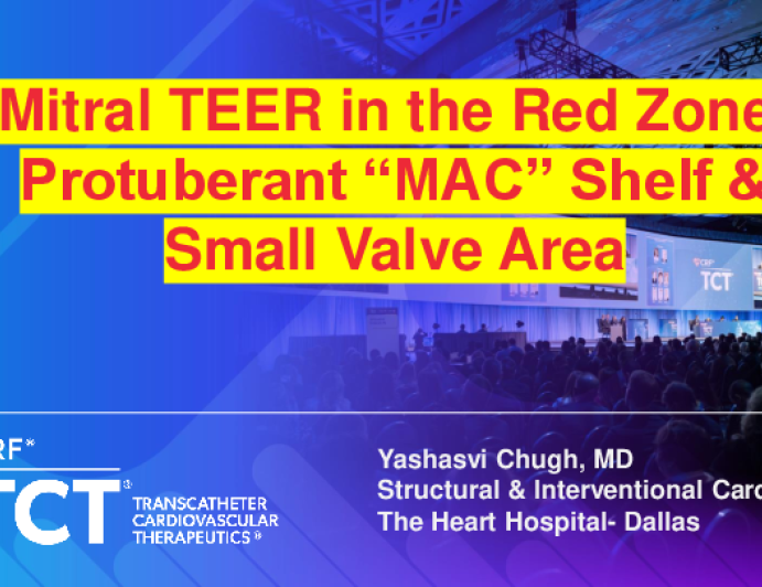 Presentation TCT 2025 TCT 1496: Mitral TEER in the Red Zone: Protuberant “MAC” Shelf & Small Valve Area Presenter: Yashasvi Chugh October 26, 2025 REGISTER for free or LOG IN to view this content TCT 2025 Up Next Presentation TCT 2025 TCT 1497: Transcatheter Edge to Edge Repair of Mitral Valve in Calcific Anatomy Presenter: Pranav Kansara October 26, 2025 More slides + Presentation TCT 2025 TCT 1498: Transcatheter Edge to Edge Repair in a Patient With Severe Mitral Regurgitation and Concomitant Mitral Annular Calcification Presenter: Aravdeep Jhand October 26, 2025 Presentation TCT 2025 TCT 1499: Transcatheter Edge-to-Edge Repair for Severe Mitral Regurgitation in a Patient With a Massive Left Atrium Presenter: Hao Zhou October 26, 2025 We Recommend Disclosures <p>Nothing to disclose</p>