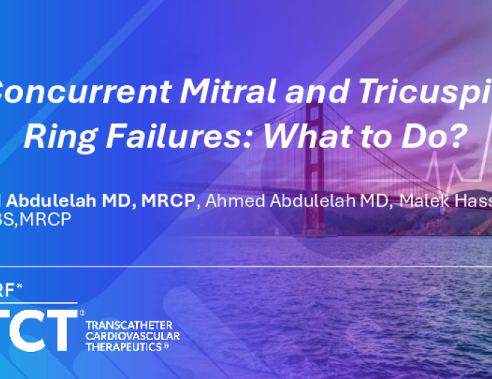 Presentation TCT 2025 TCT 1505: Concurrent Mitral and Tricuspid Ring Failures: What to Do? Presenter: Zaid Ali Abdulelah October 25, 2025 REGISTER for free or LOG IN to view this content TCT 2025 Up Next Presentation TCT 2025 TCT 1516: Don't Bring a Gun to a Knife Fight: Percutaneous Vegetation Removal Using AngioVac Presenter: Aishwarya Sharma October 25, 2025 More slides + Presentation TCT 2025 TCT 1430: Valve-in-Valve TAVR With Preceding Paravalvular Leak Closure for a Failed Bioprosthesis Presenter: Changxi Chen October 25, 2025 Presentation TCT 2025 TCT 1429: Managing Complex Post TAVR PVL: Redo Short in Short and Plug Strategy Presenter: Sahil Khera October 25, 2025 We Recommend Disclosures <p>Nothing to disclose</p>