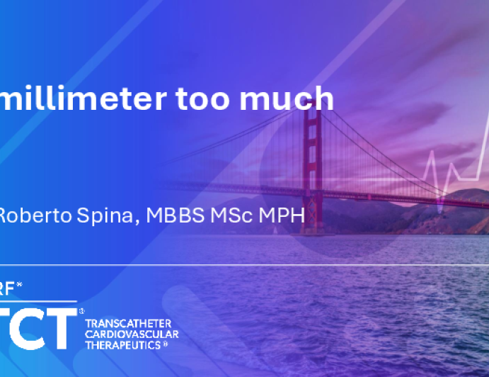 Presentation TCT 2025 TCT 1554: A Millimetre Too Much Presenter: Roberto Spina October 26, 2025 REGISTER for free or LOG IN to view this content TCT 2025 Up Next Presentation TCT 2025 TCT 1306: Evolving Role of Transcatheter Edge-to-Edge Repair With the TriClip System for Severe Mitral Regurgitation in Congenitally Corrected Transposition of the Great Arteries Presenter: Neal Shah October 25, 2025 More slides + Presentation TCT 2025 TCT 1310: Emergent Tricuspid Valve-in-Valve TTVR After Evoque Ventricularization Presenter: George Hanna October 25, 2025 Presentation TCT 2025 TCT 1314: Worrisome Fork in the Road: When Double LAMPOON Is Indicated Presenter: Ahmed Ghoneem October 25, 2025 We Recommend Disclosures <p>Nothing to disclose</p>