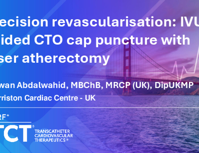Presentation TCT 2025 TCT 1565: Precision Revascularization: IVUS-Guided CTO Cap Puncture With Laser Atherectomy Presenter: Kawan Fadhil Abdalwahid October 25, 2025 REGISTER for free or LOG IN to view this content TCT 2025 Up Next Presentation TCT 2025 What Do I Wish For in the Next Generation of pLVADs? Presenter: Felix J. Woitek October 25, 2025 More slides + Presentation TCT 2025 TCT 1723: IVUS Saves the Lesion: STEMI Case Rescue Presenter: Khoa Anh Phan October 25, 2025 Presentation TCT 2025 TCT 1721: Inferior STEMI: When the Usual Suspect Isn't the Culprit Presenter: Rene Boudreau October 25, 2025 We Recommend Disclosures <p>Nothing to disclose</p>