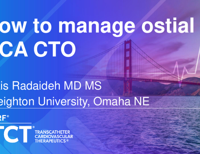 Presentation TCT 2025 TCT 1587: How to Manage Ostial RCA CTO Presenter: Qais Radaideh October 26, 2025 REGISTER for free or LOG IN to view this content TCT 2025 Up Next Presentation TCT 2025 TCT 1586: Complex Re-PCI of RCA CTO Using Antegrade Approach: When Preplanning and Support Are Key for Success Presenter: Rami Abu Fanne October 26, 2025 More slides + Presentation TCT 2025 Tips and Tricks on Dealing With Calcium in Acute Coronary Syndromes Presenter: Farouc A. Jaffer October 26, 2025 Presentation TCT 2025 TCT 1731: Stemi PCI in High Risk Calcified Lesion Presenter: Roopali Reddy Dandu October 26, 2025 We Recommend Disclosures <p>Nothing to disclose</p>
