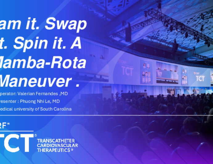 Presentation TCT 2025 TCT 1598: Jam It. Swap It. Spin It: A Mamba-Rota Maneuver Presenter: Phuong Nhi Thi Le October 27, 2025 REGISTER for free or LOG IN to view this content TCT 2025 Up Next Presentation TCT 2025 TCT 1599: Double CTO PCI Using Hybrid Algorithm and Rotational Atherectomy for In-Stent Balloon Undilatable Lesion Presenter: Fernanda Dias Freire October 27, 2025 More slides + Presentation TCT 2025 TCT 1600: A Breakthrough for ‘Uncrossable’ Calcified Cave: The Tornus Microcatheter in Action: Tornus and Rotablator in Harmony Presenter: Sungjoon Park October 27, 2025 Presentation TCT 2025 TCT 1601: Anterograde PCI of Dense and Diffuse Calcified Balloon Uncrossable RCA CTO Using Orbital Atherectomy Presenter: Dhananjay Kumar October 27, 2025 We Recommend Disclosures <p>Nothing to disclose</p>