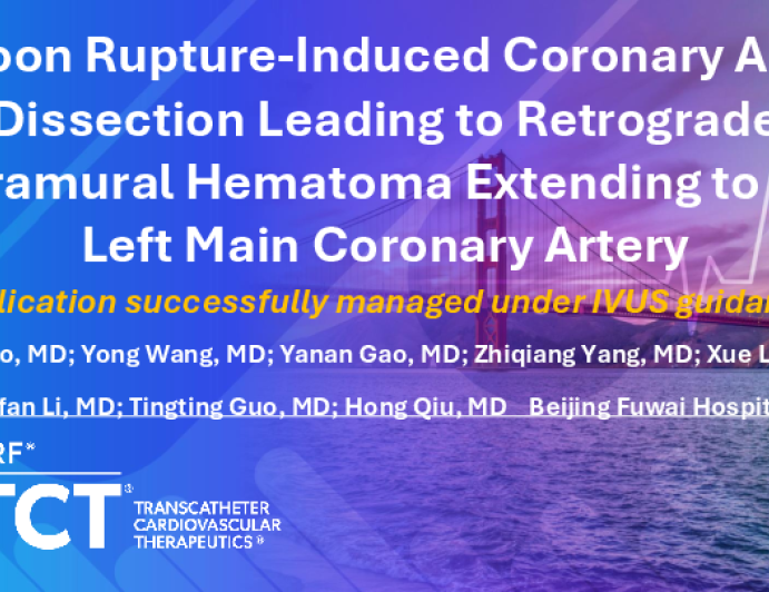 TCT 1629: Successful Management of Balloon Rupture-Induced Coronary Artery Dissection Leading to Retrograde Intramural Hematoma Extending to the Left Main Coronary Artery