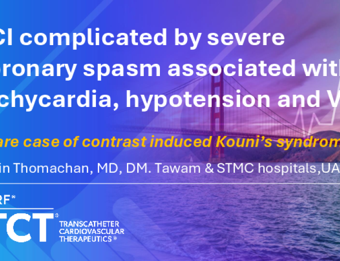 TCT 1637: Percutaneous Coronary Intervention Complicated by Severe Symptomatic Coronary Spasm Associted With Tachycardia, Hypotension and VF: A Rare Case of Contrast Induced Kounis Syndrome