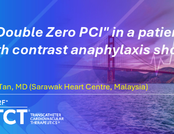 Presentation TCT 2025 TCT 1640: "Double Zero PCI" in a Patient With Contrast Anaphylaxis Shock Presenter: Tan Chen Ting October 28, 2025 REGISTER for free or LOG IN to view this content TCT 2025 Up Next Presentation TCT 2025 TCT 1701: Is an Invasive Coronary Angiography Enough? Presenter: Barbara Zdzierak October 28, 2025 More slides + Presentation TCT 2025 TCT 1568: Percutaneous Stentectomy: Extraordinary Problems Require Extraordinary Solutions Presenter: Asaad Nakhle October 28, 2025 Presentation TCT 2025 TCT 1567: Intravascular Lithotripsy and Drug-Coated Balloon for Calcified In-Stent Restenosis in the Right Coronary Artery Presenter: Jesper Rygaard Svane October 28, 2025 We Recommend Disclosures <p>Nothing to disclose</p>