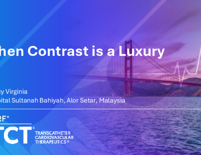 Presentation TCT 2025 TCT 1641: When Contrast Is a Luxury Presenter: Nancy Virginia October 26, 2025 REGISTER for free or LOG IN to view this content TCT 2025 Up Next Presentation TCT 2025 TCT 1642: Ultra-Low Contrast PCI in Multivessel Intervention Presenter: Sheena Lamba October 26, 2025 More slides + Presentation TCT 2025 TCT 1643: Low-Contrast Complex PCI in Advanced Renal Disease: Orbital Atherectomy and Imaging to Treat Calcified RCA Lesion Presenter: Ahmed Taha October 26, 2025 Presentation TCT 2025 TCT 1644: HD-IVUS Guided Ultra-low Contrast Left Main PCI: Landmarking and Triangulation Presenter: Brian Heng Li October 26, 2025 We Recommend Disclosures <p>Nothing to disclose</p>
