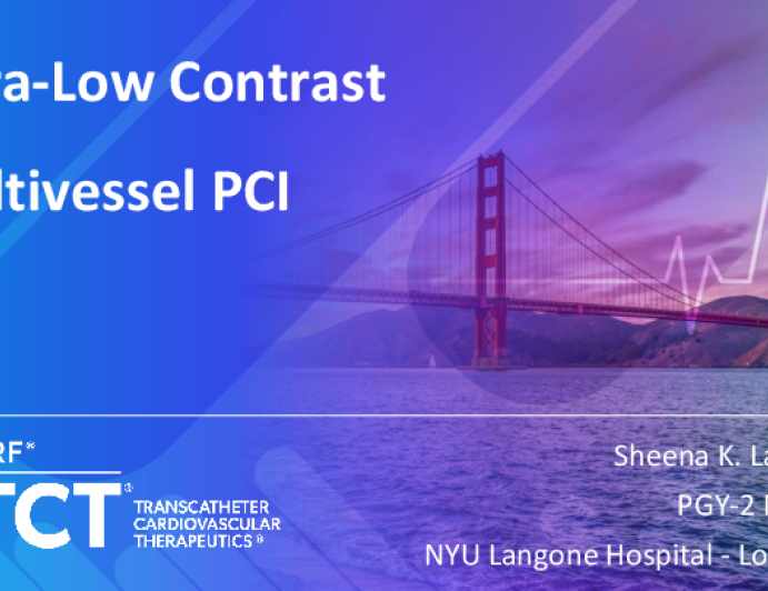 Presentation TCT 2025 TCT 1642: Ultra-Low Contrast PCI in Multivessel Intervention Presenter: Sheena Lamba October 26, 2025 REGISTER for free or LOG IN to view this content TCT 2025 Up Next Presentation TCT 2025 TCT 1643: Low-Contrast Complex PCI in Advanced Renal Disease: Orbital Atherectomy and Imaging to Treat Calcified RCA Lesion Presenter: Ahmed Taha October 26, 2025 More slides + Presentation TCT 2025 TCT 1644: HD-IVUS Guided Ultra-low Contrast Left Main PCI: Landmarking and Triangulation Presenter: Brian Heng Li October 26, 2025 Presentation TCT 2025 TCT 1645: Zero Contrast, Zero Room for Error: Echo Guided Ventricular Septal Rupture Device Closure Through Trans Thoracic Echocardiography in a Patient With Mods Presenter: Parag Barwad October 26, 2025 We Recommend Disclosures <p>Nothing to disclose</p>