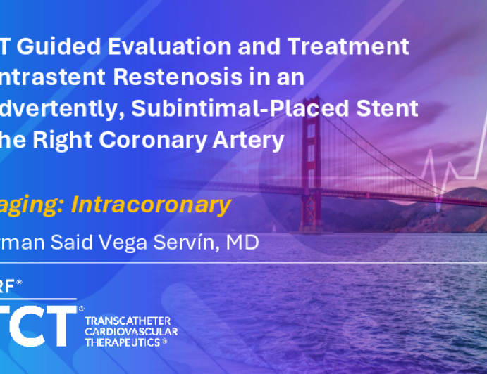 TCT 1655: OCT Guided Evaluation and Treatment of Intrastent Restenosis in an Inadvertently, Subintimal-Placed Stent in the Right Coronary Artery