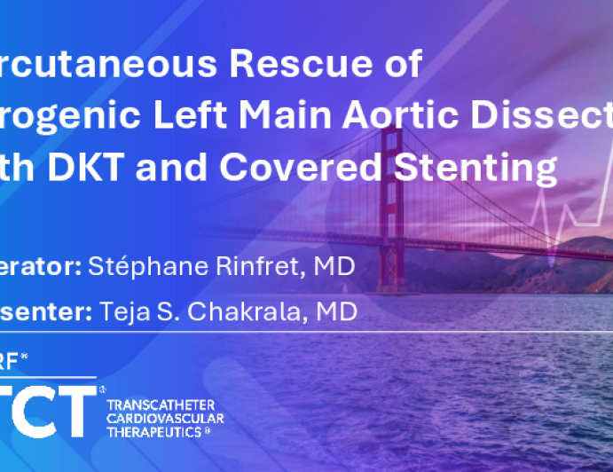 Presentation TCT 2025 TCT 1662: Percutaneous Rescue of Iatrogenic Left Main Aortic Dissection With DKT and Covered Stenting Presenter: Teja Sanjiv Chakrala October 27, 2025 REGISTER for free or LOG IN to view this content TCT 2025 Up Next Presentation TCT 2025 TCT 1664: Iatrogenic Conversion of Medina 0,0,1 to 1,1,1 Presenter: Divyanshi Sood October 27, 2025 More slides + Presentation TCT 2025 TCT 1607: CCTA to Support PCI Complication Management Presenter: Katarzyna Kolodziej October 27, 2025 Presentation TCT 2025 TCT 1665: The Concertina Illusion: A Master Imitator of Catastrophic Coronary Dissection During Acute Coronary Syndrome Presenter: Lucio Yuri Vasquez Barahona October 27, 2025 We Recommend Disclosures <p>Nothing to disclose</p>