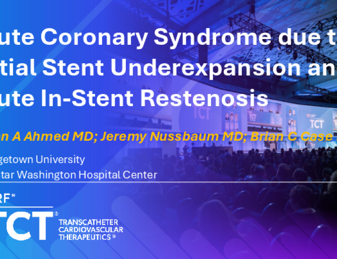 Presentation TCT 2025 TCT 1667: Acute Coronary Syndrome due to Ostial Stent Underexpansion and Acute In-Stent Restenosis Presenter: Shaan Ali Ahmed October 25, 2025 REGISTER for free or LOG IN to view this content TCT 2025 Up Next Presentation TCT 2025 TCT 1666: A Potential Killer: Giant Aneurysm of Right Coronary Sinus Presenter: Xue Li October 25, 2025 More slides + Presentation TCT 2025 My Tips and Tricks for Manging RCA Tortuosity and Ostial Location Presenter: Stuart Watkins October 25, 2025 Presentation TCT 2025 TCT 1631: Stuck Balloon: My Solution Presenter: Itsik Ben-Dor October 25, 2025 We Recommend Disclosures <p>Nothing to disclose</p>