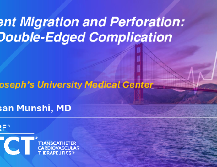 Presentation TCT 2025 TCT 1674: Stent Migration and Perforation: A Double-Edged Complication Presenter: Hasan Munshi October 27, 2025 REGISTER for free or LOG IN to view this content TCT 2025 Up Next Presentation TCT 2025 TCT 1672: An Innovative Approach to Optimizing Coronary Angioplasty in Complex Cases Presenter: Kamil Banasik October 27, 2025 More slides + Presentation TCT 2025 TCT 1675: Challenging Septal: Management of a Perforated Proximal Septal Artery Presenter: Paul Tern October 27, 2025 Presentation TCT 2025 TCT 1673: A Coronary Perforation After Post-Dilation Complication Management and Role of IVUS Presenter: Khoa Anh Phan October 27, 2025 We Recommend Disclosures <p>Nothing to disclose</p>