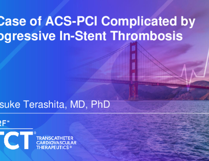Presentation TCT 2025 TCT 1679: A Case of ACS-PCI Complicated by Progressive In-Stent Thrombosis: Strategies and Lessons Presenter: Daisuke Terashita October 27, 2025 REGISTER for free or LOG IN to view this content TCT 2025 Up Next Presentation TCT 2025 TCT 1680: Triple Trouble Presenter: Mohamed Abo Bakr Elbayoumi October 27, 2025 More slides + Presentation TCT 2025 My Tips and Tricks for Prevention and Management of Aortic Valve Embolizations Presenter: Chad Alan Kliger October 27, 2025 Presentation TCT 2025 TCT 1417: Valve-Through-Valve Bailout: Successful Sapien TAVR via Dislodged CoreValve Snared in Ascending Aorta Presenter: Ghulam Mujtaba Ghumman October 27, 2025 We Recommend Disclosures <p>Nothing to disclose</p>