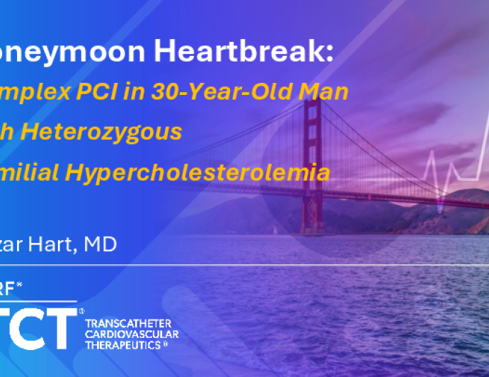 Presentation TCT 2025 TCT 1702: Honeymoon Heartbreak: Complex PCI in 30-Year-Old With Heterozygous Familial Hypercholesterolemia Presenter: Ilgizar Hart October 28, 2025 REGISTER for free or LOG IN to view this content TCT 2025 Up Next Presentation TCT 2025 TCT 1638: Ultra-Low Contrast or Zero-Contrast Angioplasty in Patients of AMI Inferior With Cardiogenic Shock With CKD Grade-V Renal Failure Presenter: Afzalur Rahman October 28, 2025 More slides + Presentation TCT 2025 TCT 1639: Zero-Contrast Multivessel PCI in a NSTEMI Patient With Heart Failure and Renal Insufficiency Accompanied by Brain Metastasis of Thyroid Cancer Presenter: Xiao Wang October 28, 2025 Presentation TCT 2025 Lessons Learned From My Most Memorable CHIP Interventions Presenter: Somjot S. Brar October 28, 2025 We Recommend Disclosures <p>Nothing to disclose</p>