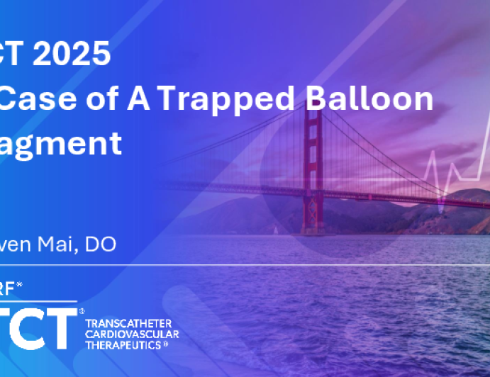Presentation TCT 2025 TCT 1713: Successful Management of an Entrapped Balloon Fragment During Post Dilatation Presenter: Steven Mai October 26, 2025 REGISTER for free or LOG IN to view this content TCT 2025 Up Next Presentation TCT 2025 TCT 1714: You Thought You Got It Presenter: Rodney Soh October 26, 2025 More slides + Presentation TCT 2025 TCT 1715: Intravascular Ultrasound Reduces Morbidity and Mortality... Usually Presenter: Glenn Rainey October 26, 2025 Presentation TCT 2025 TCT 1718: This Patient Taught Me the Most: In Multivessel PCI During Left Main Bifurcation PCI: LCX Stent Dislodgement: Its Retrieval and Successful Bifurcation PCI Presenter: Ajay Joshi October 26, 2025 We Recommend Disclosures <p>Nothing to disclose</p>
