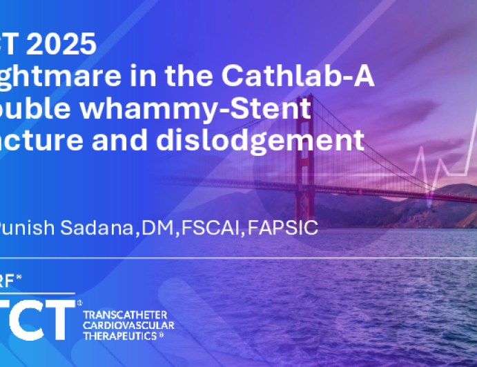 Presentation TCT 2025 TCT 1720: Nightmare in the Cath Lab: A Double Whammy: Stent Fracture and Dislodgement Presenter: Punish Sadana October 26, 2025 REGISTER for free or LOG IN to view this content TCT 2025 Up Next Presentation TCT 2025 TCT 1834: Anomalous Aortic Origin of the Right Coronary Artery: Diagnostic Challenges and Management Strategies Presenter: Sruti Somani October 26, 2025 More slides + Presentation TCT 2025 My Tips and Tricks for Prevention and Management of Equipment-Related Complications in ACS Presenter: Scott Harding October 26, 2025 Presentation TCT 2025 TCT 1835: More Than Meets the Eye Presenter: Matthew Seibert October 26, 2025 We Recommend Disclosures <p>Nothing to disclose</p>