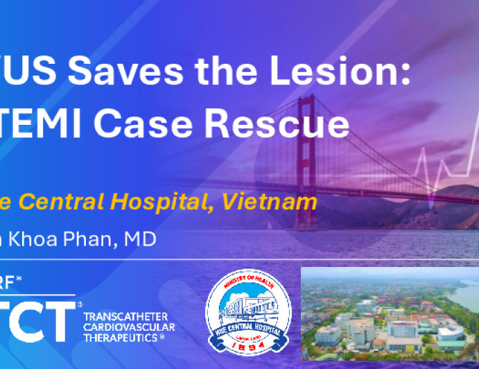 Presentation TCT 2025 TCT 1723: IVUS Saves the Lesion: STEMI Case Rescue Presenter: Khoa Anh Phan October 25, 2025 REGISTER for free or LOG IN to view this content TCT 2025 Up Next Presentation TCT 2025 TCT 1721: Inferior STEMI: When the Usual Suspect Isn't the Culprit Presenter: Rene Boudreau October 25, 2025 More slides + Presentation TCT 2025 Non-Invasive and Invasive Imaging in Guiding the ACS Intervention: A Personal Perspective Presenter: Michal J. Hawranek October 25, 2025 Presentation TCT 2025 TCT 1578: OCT-Guided Diagnosis of Marijuana-Induced SCAD Presenter: Jagdeep Kaur October 25, 2025 We Recommend Disclosures <p>Nothing to disclose</p>