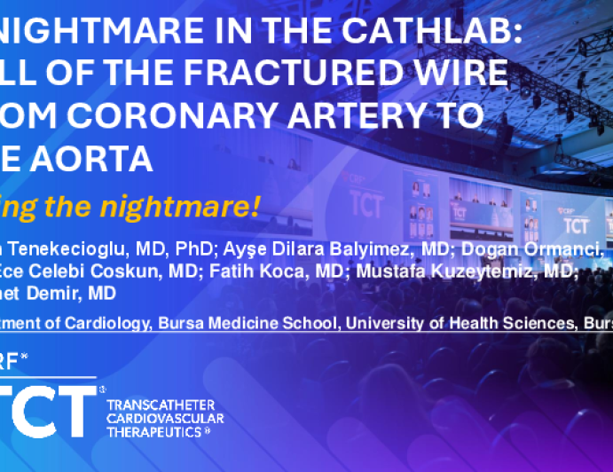 Presentation TCT 2025 TCT 1738: A Nightmare in the Cathlab: Fall of the Fractured Wire From Coronary Artery to the Aorta Presenter: Erhan Tenekecioglu October 28, 2025 REGISTER for free or LOG IN to view this content TCT 2025 Up Next Presentation TCT 2025 TCT 1737: Delayed Post-PCI Dissection Conundrum Presenter: Chee Keong Ng October 28, 2025 More slides + Presentation TCT 2025 TCT 1736: Calculated Risk or Foolish Gamble? Conservative Management of Complex LMS Bifurcation and RCA PCI, Complicated by Balloon Dissections Presenter: Nouman Arshad October 28, 2025 Presentation TCT 2025 How Do I Minimize Complications of Emergent Revascularization? Presenter: Divaka Perera October 28, 2025 We Recommend Disclosures <p>Nothing to disclose</p>