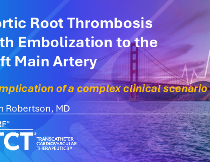 Presentation TCT 2025 TCT 1746: Aortic Root Thrombosis With Embolization to the Left Main Artery Presenter: Samuel Robertson October 27, 2025 REGISTER for free or LOG IN to view this content TCT 2025 Up Next Presentation TCT 2025 Lessons I Learned From My Most Memorable Unusual MI Intervention Presenter: Ahmed Magdy October 27, 2025 More slides + Presentation TCT 2025 TCT 1745: Neck to Heart: Penetrating Trauma Unmasks a Double Edged Emergency Presenter: Mohit Pahuja October 27, 2025 Presentation TCT 2025 TCT 1744: From Roadside to Reperfusion: Managing ACS After a Traffic Collision Presenter: Omar Solyman October 27, 2025 We Recommend Disclosures <p>Nothing to disclose</p>
