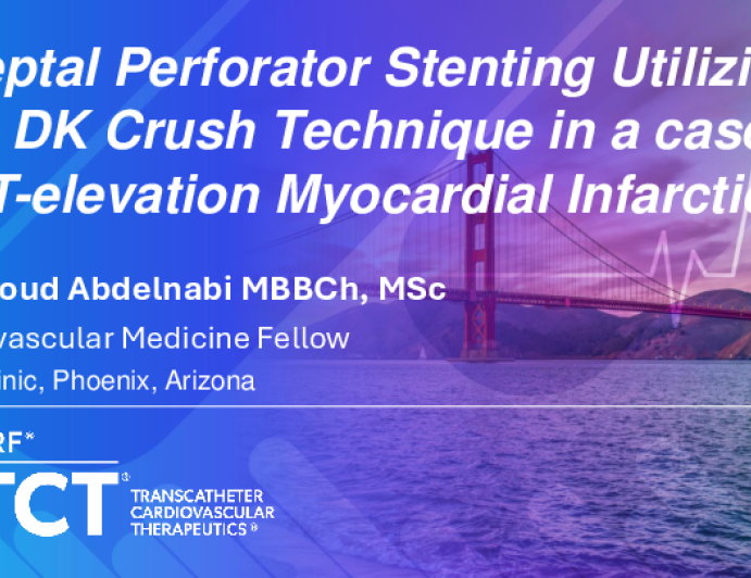 TCT 1748: Septal Perforator Stenting Utilizing the DK Crush Technique in a Case of ST-elevation Myocardial Infarction