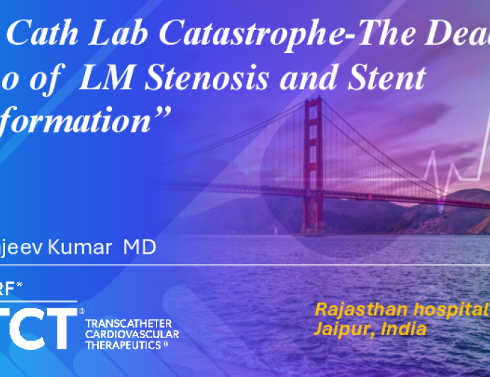 Presentation TCT 2025 TCT 1773: A Cath Lab Catastrophe: The Deadly Duo of LM Stenosis and Stent Deformation Presenter: Sanjeev Kumar October 26, 2025 REGISTER for free or LOG IN to view this content TCT 2025 Up Next Presentation TCT 2025 TCT 1772: Impella-Assisted PCI Following Iatrogenic Left Main Dissection and VF Arrest: A Staged Revascularization Complication Presenter: Koushik Sanku October 26, 2025 More slides + Presentation TCT 2025 TCT 1771: DK Crush Regret: When the Jailed Wire Becomes Life-Saving Presenter: Ahmed A. Abdulelah October 26, 2025 Presentation TCT 2025 TCT 1707: Ticagrelor Resistance Causing Acute In-Stent Thrombosis: Successful Management With Prasugrel and Balloon Angioplasty Presenter: Kaiyu Jia October 26, 2025 We Recommend Disclosures <p>Nothing to disclose</p>