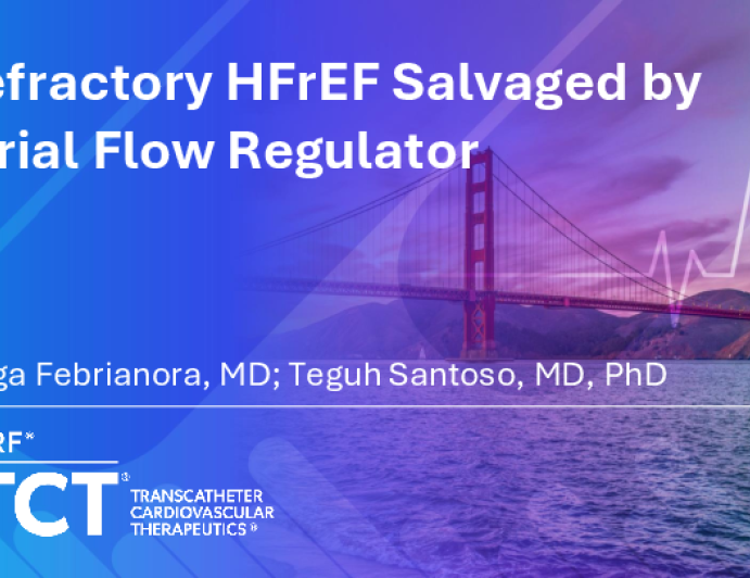 Presentation TCT 2025 TCT 1777: Refractory HFrEF Salvaged by Atrial Flow Regulator Presenter: Mega Febrianora October 25, 2025 REGISTER for free or LOG IN to view this content TCT 2025 Up Next Presentation TCT 2025 TCT 1776: A Case of Simultaneous Revascularization for Non-ST Elevation Myocardial Infarction With Multi-Vessel Disease Complicated by Congestive Heart Failure Presenter: Kazuki Ichihara October 25, 2025 More slides + Presentation TCT 2025 How Do I Decide on MCS Support in Elective Coronary Intervention? Presenter: Luca Testa October 25, 2025 Presentation TCT 2025 TCT 1760: Left Main and LAD Severely Calcified Last Remaining Vessel Protected PCI in Low EF and Severe PAD: Many Tasks All at a Time Presenter: Anita Paggi October 25, 2025 We Recommend Disclosures <p>Nothing to disclose</p>