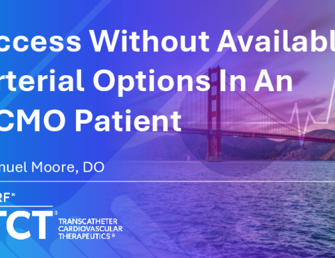 Presentation TCT 2025 TCT 1784: Access Without Available Alternatives in an ECMO Patient: A Case Report Presenter: Samuel Moore October 27, 2025 REGISTER for free or LOG IN to view this content TCT 2025 Up Next Presentation TCT 2025 TCT 1848: New Kit on the Block: Dual-Imaging Assessment of a Novel Hertz Contact Intravascular Lithotripsy in Complex Calcified Lesion Presenter: Marta Bujak October 27, 2025 More slides + Presentation TCT 2025 TCT 1692: Unusual Suspect! A Rare Cause of Back-to-Back Stemis and Pulmonary Embolism: A Catastrophic Antiphospholipid Syndrome Presenter: Ramzi Kharchi October 27, 2025 Presentation TCT 2025 TCT 1904: Endovascular Repair of an Infrarenal Abdominal Aortic Aneurysm With Aortoenteric Fistula: A Rare Clinical Presentation Presenter: Aakash Batra October 27, 2025 We Recommend Disclosures <p>Nothing to disclose</p>