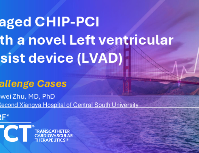 Presentation TCT 2025 TCT 1804: Staged CHIP-PCI With a Novel Left Ventricular Assist Device Presenter: Zhaowei Zhu October 25, 2025 REGISTER for free or LOG IN to view this content TCT 2025 Up Next Presentation TCT 2025 TCT 1803: Complete Revascularization in Patients With Two Chronic Total Occlusions and Low Ejection Fraction Supported With a Percutaneous Ventricular Assist Device Presenter: Jiancheng Xiu October 25, 2025 More slides + Presentation TCT 2025 TCT 1802: Use of a Novel Percutaneous Collapsable 22F-to-10F Mechanical Circulatory Support Device During a High-Risk Percutaneous Coronary Intervention (HRPCI): A Case Report on Ventriculo-Arterial Uncoupling Presenter: Marco Antonio Fichtner Bellizze October 25, 2025 Presentation TCT 2025 TCT 1805: Successful Multivessel PCI for Severe LV Dysfunction and Anomalous RCA Origin With the Aid of a Novel 9F Expandable Ventricular Assist Device Presenter: Rui Wang October 25, 2025 We Recommend Disclosures <p>Nothing to disclose</p>
