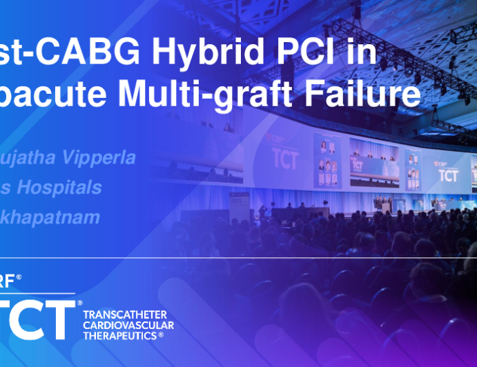 Presentation TCT 2025 TCT 1825: Post-CABG Hybrid PCI in Subacute Multi-Graft Failure Presenter: Sujatha Vipperla October 26, 2025 REGISTER for free or LOG IN to view this content TCT 2025 Up Next Presentation TCT 2025 Tips and Tricks on Staying Out of Trouble in Calcified RCAs Presenter: Robert F. Riley October 26, 2025 More slides + Presentation TCT 2025 TCT 1616: Balloon Uncrossable Calcific Subset: The Dilemma Presenter: Jayagopal Pathiyil Balagopalan October 26, 2025 Presentation TCT 2025 TCT 1617: Stone at the Gate: A Tale of Burrs, Balloons, Laser and Lithotripsy Presenter: Anwar Hussain October 26, 2025 We Recommend Disclosures <p>Nothing to disclose</p>