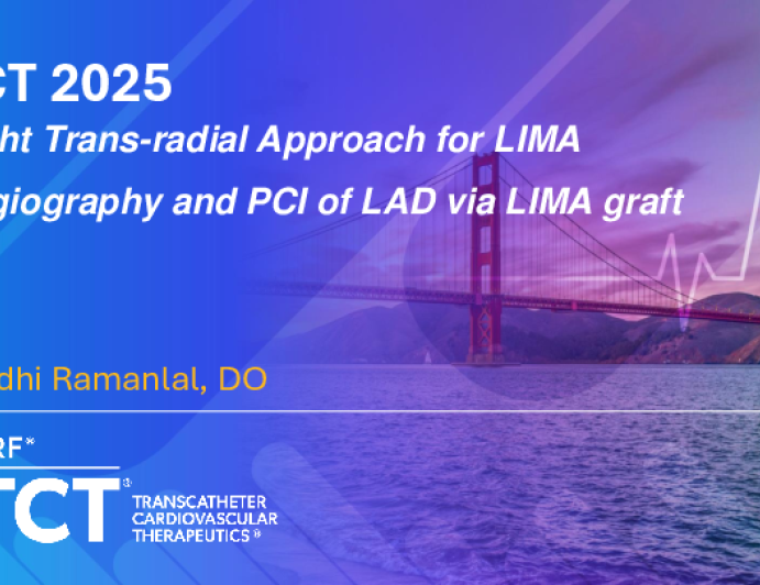 Presentation TCT 2025 TCT 1829: Right Transradial Approach for LIMA Angiography and PCI of LAD via LIMA Graft Presenter: Riddhi Ramanlal October 26, 2025 REGISTER for free or LOG IN to view this content TCT 2025 Up Next Presentation TCT 2025 TCT 1830: Balloon Assisted Fenestration Technique in the Treatment of Left Internal Mammary Artery Dissection Presenter: George Besis October 26, 2025 More slides + Presentation TCT 2025 TCT 1794: Intraoperative Left Main Coronary Occlusion During Redo MVR: Salvage PCI With Dual Mechanical Support Presenter: Mohammed Salih October 26, 2025 Presentation TCT 2025 TCT 1793: Acute Post Bentall Cardiogenic Shock Rescued by Left Atrial Extracorporeal Membrane Oxygenation (LAVA-ECMO) and Emergent Left Main PCI Presenter: Mostafa Naguib October 26, 2025 We Recommend Disclosures <p>Nothing to disclose</p>