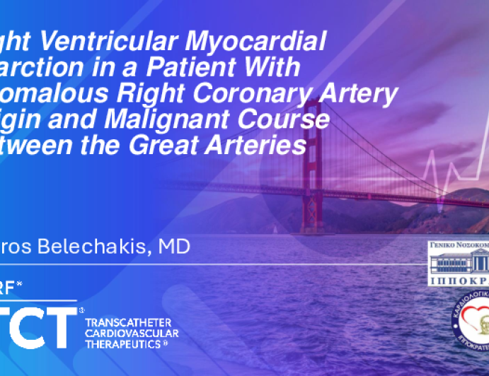 TCT 1832: Right Ventricular Myocardial Infarction in a Patient With Anomalous Right Coronary Artery Origin and Malignant Course Between the Great Arteries