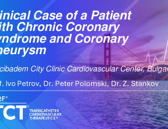 Presentation TCT 2025 TCT 1860: Clinical Case of a Patient With Chronic Coronary Syndrome and Coronary Aneurysm Presenter: Ivo Petrov October 27, 2025 REGISTER for free or LOG IN to view this content TCT 2025 Up Next Presentation TCT 2025 TCT 1879: Chronic Total Occlusion Intervention in Cardiac Allograft Vasculopathy: Preserving Graft Longevity Presenter: Mehmet Emir Arman October 27, 2025 More slides + Presentation TCT 2025 TCT 1878: Percutaneous Coronary Intervention of Double Chronic Total Occlusion in a CHIP Patient Using Combined Antegrade and Retrograde Approach Presenter: Aaron Eduardo Ramirez Chavarria October 27, 2025 Presentation TCT 2025 TCT 1876: A Single Staged, Complex High-Risk Indicated Percutaneous Intervention to Right Coronary Chronic Total Occlusion and Left Main Stem Bifurcation Disease Presenter: Christian Sunur October 27, 2025 We Recommend Disclosures <p>Nothing to disclose</p>