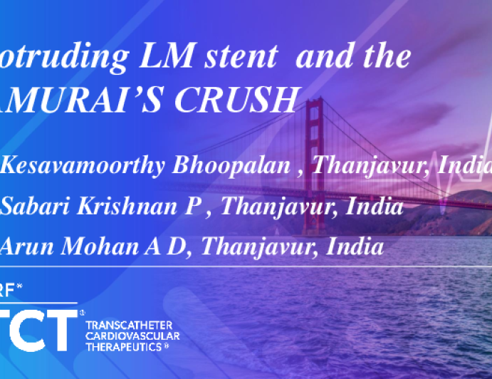 TCT 1885: Samurai's Crush: A Novel Technique to Optimize Protruding Stent Into the Left Main Artery Without a Wire Across