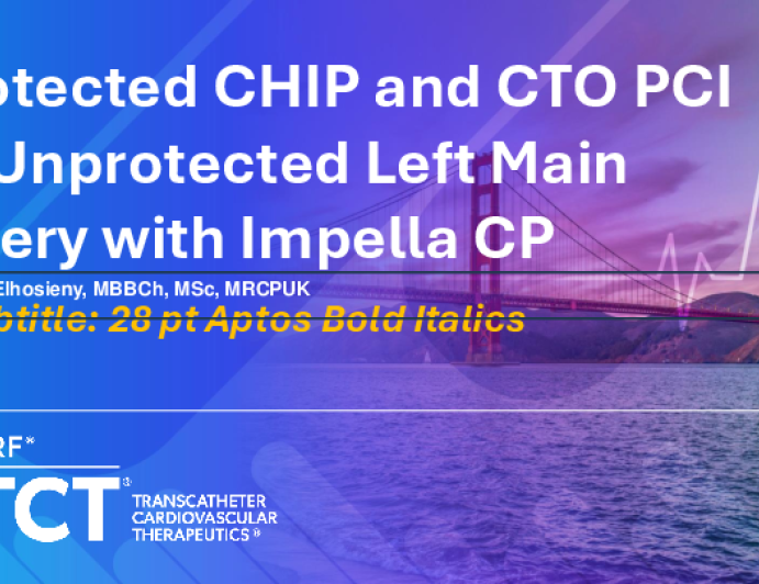 Presentation TCT 2025 TCT 1890: Protected CHIP and CTO PCI to Unprotected Left Main Artery Assisted With Impella CP Presenter: Adel El Hosieny October 27, 2025 REGISTER for free or LOG IN to view this content TCT 2025 Up Next Presentation TCT 2025 Lessons From My Most Memorable CHIP Cases Won on Patience and Perseverance Presenter: Andrejs Erglis October 27, 2025 More slides + Presentation TCT 2025 TCT 1891: The Great Awakening: Complete LV Recovery After CTO PCI Guided by Myocardial Viability Presenter: Ali Ahmad October 27, 2025 Presentation TCT 2025 TCT 1892: From Heart Failure to Success: Complete Revascularization in High-Risk Multivessel Coronary Artery Disease Presenter: Ilgizar Hart October 27, 2025 We Recommend Disclosures <p>Nothing to disclose</p>
