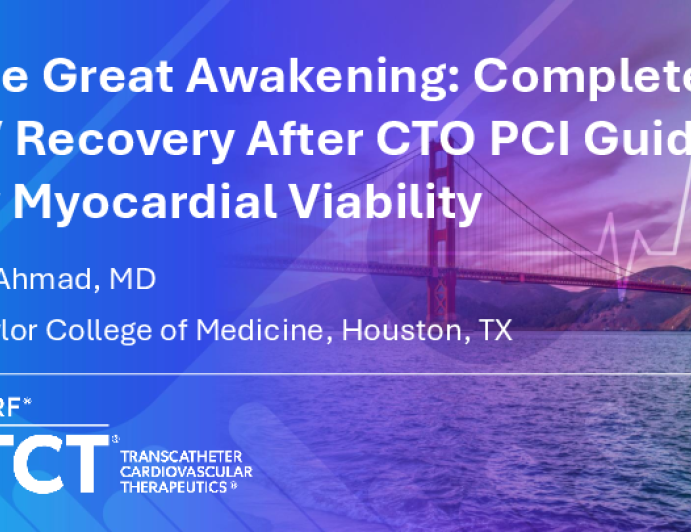 Presentation TCT 2025 TCT 1891: The Great Awakening: Complete LV Recovery After CTO PCI Guided by Myocardial Viability Presenter: Ali Ahmad October 27, 2025 REGISTER for free or LOG IN to view this content TCT 2025 Up Next Presentation TCT 2025 TCT 1892: From Heart Failure to Success: Complete Revascularization in High-Risk Multivessel Coronary Artery Disease Presenter: Ilgizar Hart October 27, 2025 More slides + Presentation TCT 2025 TCT 1893: Acute Coronary Event With Sudden Cardiac Arrest in a Successful Resuscitation and Percutaneous Intervention Using OCT Guidance Presenter: Eduardo Ismael Arteaga Chan October 27, 2025 Presentation TCT 2025 TCT 1894: Successful Management of Pulmonary Artery Perforation as a Complication of Biventricular Percutaneous Mechanical Support Presenter: Inderpal Singh October 27, 2025 We Recommend Disclosures <p>Nothing to disclose</p>