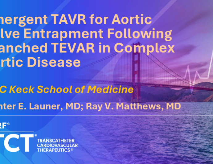 Presentation TCT 2025 TCT 1909: Emergent TAVR for Aortic Valve Entrapment Following Branched TEVAR in Complex Aortic Disease Presenter: Hunter Edward Launer October 26, 2025 REGISTER for free or LOG IN to view this content TCT 2025 Up Next Presentation TCT 2025 Contemporary Approach to Deep Vein Thrombosis Presenter: Raghu Kolluri October 26, 2025 More slides + Presentation TCT 2025 TCT 1923: Breaking the Block: Venous Victory Presenter: Anil Kumar Choudhary October 26, 2025 Presentation TCT 2025 TCT 1924: Treating Phlegmasia Cerulea Dolens in a Flash: Contrafemoral Venous Thrombectomy Technique Utilizing the Lightning Flash System Presenter: S. Jay Mathews October 26, 2025 We Recommend Disclosures <p>Nothing to disclose</p>