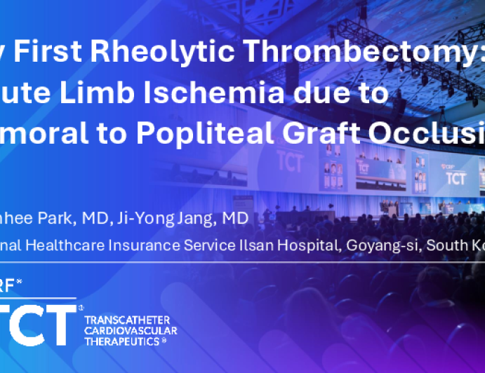 Presentation TCT 2025 TCT 1913: My First Rheolytic Thrombectomy: Acute Limb Ischemia due to Femoral to Popliteal Graft Occlusion Presenter: Geunhee Park October 27, 2025 REGISTER for free or LOG IN to view this content TCT 2025 Up Next Presentation TCT 2025 My Tips and Tricks for Prevention and Management of Dissections Presenter: Tom J. Ford October 27, 2025 More slides + Presentation TCT 2025 TCT 1605: Salvaging Spiral RCA Dissection: Aspiration Decompression and Live IVUS-Guided Rewiring Presenter: Rory Gallen October 27, 2025 Presentation TCT 2025 TCT 1475: Applying TriClip Guide to Manage Small Left Atrium in a Redo MitraClip Case Presenter: Mi Chen October 27, 2025 We Recommend Disclosures <p>Nothing to disclose</p>