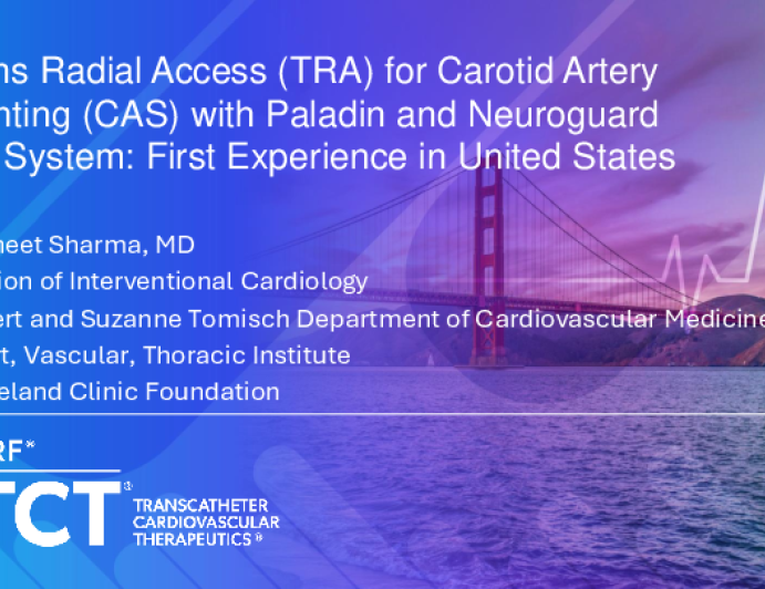TCT 1938: Trans Radial Access (TRA) for Carotid Artery Stenting (CAS) With Paladin and Neuroguard iEP System: First Experience in United States