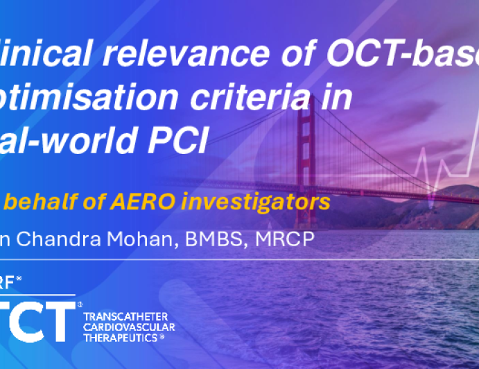 Presentation TCT 2025 TCT 215: Clinical Relevance of OCT Based Optimisation Criteria in Real World PCI Presenter: Nitin Chandra Mohan October 26, 2025 REGISTER for free or LOG IN to view this content TCT 2025 Up Next Presentation TCT 2025 TCT 162: Clinical Outcomes of Intravascular Lithotripsy Versus Rotational Atherectomy for Coronary Calcification: A Comprehensive Systematic Review and Meta-Analysis Presenter: Mohamed Elnady October 26, 2025 More slides + Presentation TCT 2025 TCT 164: Coronary AtheRectomy and Drug Coated Ballon Intervention in All-comer Calcific lesions: The CARDIAC Trial Presenter: Daniela Benedetto October 26, 2025 Presentation TCT 2025 TCT 249: Impact of Cardiac Arrest on Outcomes in Patients with Cardiogenic Shock Complicating Acute Myocardial Infarction Presenter: Anne Freund October 26, 2025 We Recommend Disclosures <p>Nothing to disclose</p>