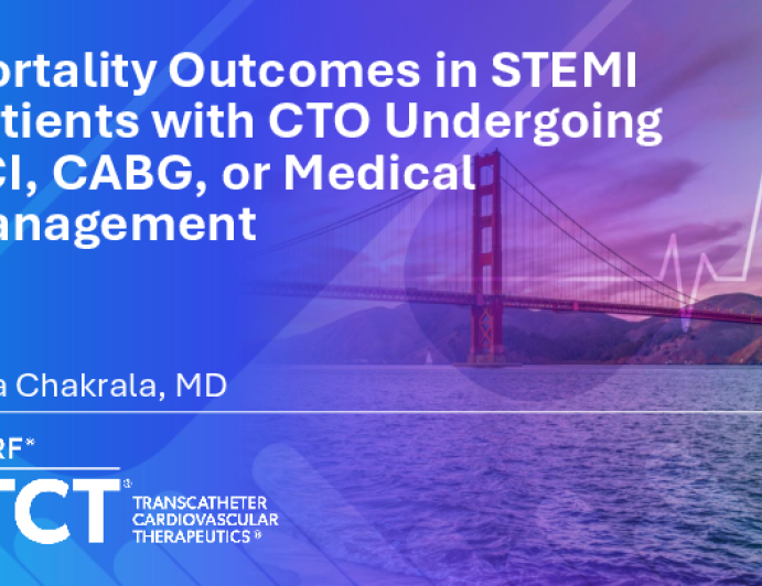 Presentation TCT 2025 TCT 303: Mortality Outcomes in STEMI Patients with CTO Undergoing PCI, CABG, or Medical Management Presenter: Teja Sanjiv Chakrala October 26, 2025 REGISTER for free or LOG IN to view this content TCT 2025 Up Next Presentation TCT 2025 TCT 299: Impact of Coronary Artery Bypass Graft and Cardiac Catheterization Timing on Mortality and Disability in NSTEMI Patients Presenter: Brett David Cohen October 26, 2025 More slides + Presentation TCT 2025 TCT 304: Computed tomography angiography and holographic visualization in planning minimally invasive coronary surgery Presenter: Adriana Zlahoda-Huzior October 26, 2025 Presentation TCT 2025 TCT 1140: Stent Frame Deformation of Self-Expanding TAVR in Bicuspid Aortic Stenosis and Impact on Valve Performance Presenter: Gabriela Tirado-Conte October 26, 2025 We Recommend Disclosures <p>Nothing to disclose</p>