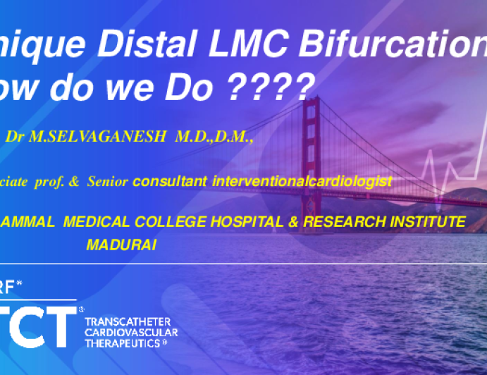 Presentation TCT 2025 TCT 384: Unique Distal LMCA Bifurcation…… How do we Do ???? Presenter: Mariappan Selvaganesh October 28, 2025 REGISTER for free or LOG IN to view this content TCT 2025 Up Next Presentation TCT 2025 TCT 888: DYNAMX Bioadaptor Implantation for Treatment of Complex Coronary Artery Disease – Final Results from The DYNAMITE Study Presenter: Pier Pasquale Leone October 28, 2025 More slides + Presentation TCT 2025 TCT 900: Comparison of Drug-Coated Balloons and The Bioadaptor in Treatment of De Novo Coronary Lesions: A 2-Year Nationwide Analysis from SWEDEHEART Presenter: David Erlinge October 28, 2025 Presentation TCT 2025 TCT 737: Longitudinal Effects of Elevated Left Atrial Pressures with Percutaneous Left Atrial Appendage Closure - WATCHOUT Registry Presenter: Thomas E. Waggoner October 28, 2025 We Recommend Disclosures <p>Nothing to disclose</p>