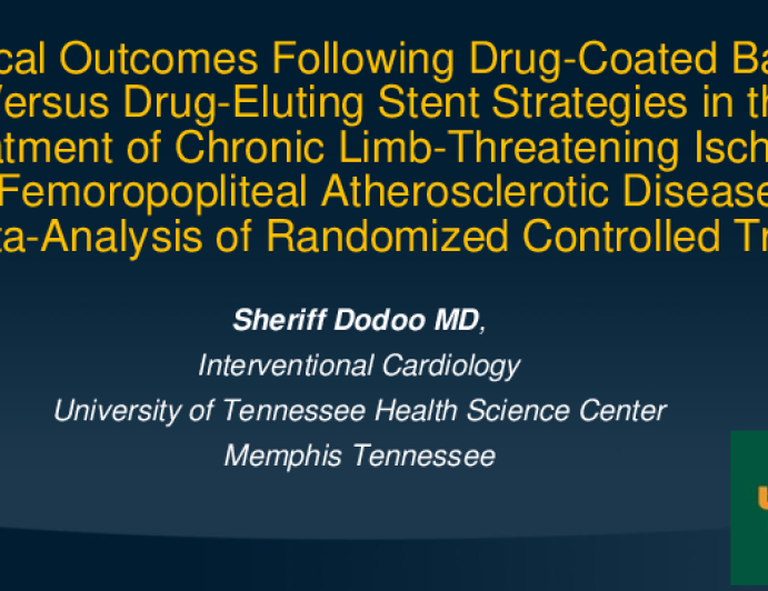 TCT 462: Clinical Outcomes Following Drug-Coated Balloon Versus Drug-Eluting Stent Strategies in the Treatment of Chronic Limb-Threatening Ischemia in Femoropopliteal Atherosclerotic Disease: A Meta-Analysis of Randomized Controlled Trials.