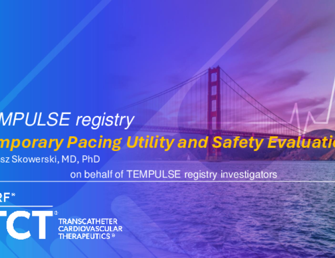 Presentation TCT 2025 TCT 51: TEMPULSE registry: Temporary Pacing Utility and Safety Evaluation Presenter: Tomasz Skowerski October 28, 2025 REGISTER for free or LOG IN to view this content TCT 2025 Up Next Presentation TCT 2025 TCT 732: Peri-device Leak and Clinical Outcomes After LAAC Using a Fluoropolymer Coated Device in Patients with Paroxysmal vs. Persistent Atrial Fibrillation: HEAL-LAA Post Approval Study Sub-analysis Presenter: Thomas E. Waggoner October 28, 2025 More slides + Presentation TCT 2025 TCT 1166: TRANSCATHETER AORTIC VALVE IMPLANTATION IN A HOSPITAL WITHOUT ON-SITE CARDIAC SURGERY - THE FIRST ITALIAN SINGLE-CENTER EXPERIENCE Presenter: Giandomenico Mancini October 28, 2025 Presentation TCT 2025 TCT 1169: Impact of Neo-Commissural Alignment on Frame Morphology in the SAPIEN 3/3 Ultra Valve Presenter: Mi Chen October 28, 2025 We Recommend Disclosures <p>Nothing to disclose</p>