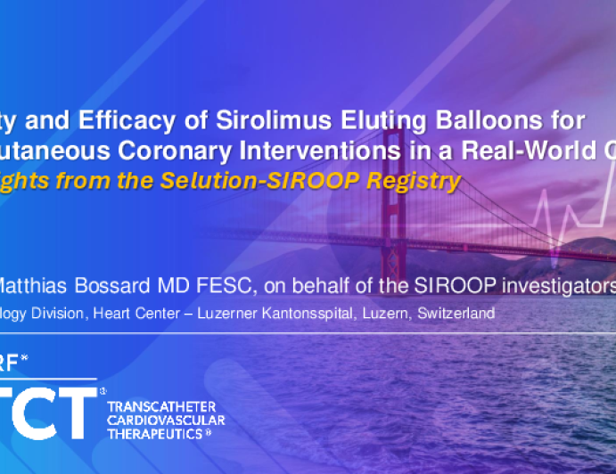 TCT 517: Safety and efficacy of sirolimus-coated drug balloons for percutaneous coronary interventions in a real-world cohort: Results from the Selution-SIROOP registry