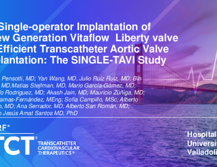 Presentation TCT 2025 TCT 6: Initial Use of VitaFlow for Single-Operator TAVR: A First Look Presenter: Filippo Pensotti October 25, 2025 REGISTER for free or LOG IN to view this content TCT 2025 Up Next Presentation TCT 2025 TCT 11: Safety and outcome of wire assisted mitral valve crossing in difficult left ventricular entry of balloon in percutaneous transluminal mitral balloon valvotomy. Presenter: Puneet Aggarwal October 25, 2025 More slides + Presentation TCT 2025 TCT 12: Comorbidity of Rheumatic Heart Disease and Heart Failure in the United States: Trends in Prevalence, Hospitalizations, and Public Health Disparities (1999–2023) Presenter: Ahmed Elmorsy Mohamed October 25, 2025 Presentation TCT 2025 TCT 728: Evolving Strategies to Prevent Coronary and Left Ventricular Outflow Tract Obstruction: The UNICORN and BATMAN Techniques – A Multicenter Study Presenter: Elsa Hebbo October 25, 2025 We Recommend Disclosures <p>Nothing to disclose</p>
