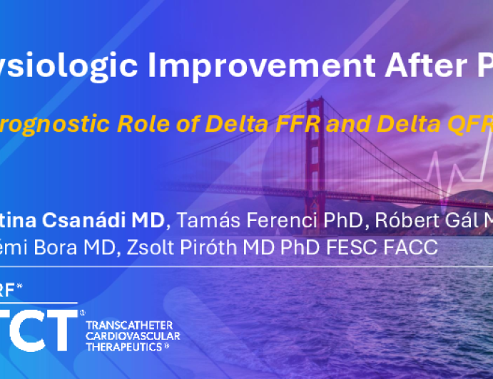 Presentation TCT 2025 TCT 645: Physiologic Improvement After PCI: Prognostic Role of Delta FFR and Delta QFR Presenter: Bettina Csanádi October 26, 2025 REGISTER for free or LOG IN to view this content TCT 2025 Up Next Presentation TCT 2025 TCT 647: Prognostic Utility of the Pullback Pressure Gradient (PPG) to Predict Clinical Outcomes After PCI Presenter: Koshiro Sakai October 26, 2025 More slides + Presentation TCT 2025 TCT 878: Monocentric experience with the HighLife and HighLife Clarity TransSeptal Mitral Valve Replacement systems in the context of contemporary transcatheter mitral valve replacement systems Presenter: Wolfgang Rottbauer October 26, 2025 Presentation TCT 2025 TCT 873: ALTER Study Results and Preliminary Chinese Single-Center Experience Treating Extra‑Large Aortic Valve Annuli Presenter: Guangyuan Song October 26, 2025 We Recommend Disclosures <p>Nothing to disclose</p>